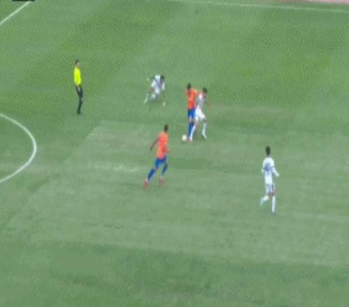 第35分钟,李新翔获得单刀,趟过王大雷后被高准翼及时解围破坏。