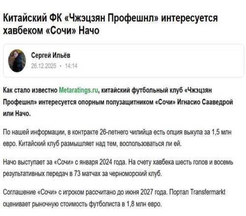 新赛季浙江队急需补强后腰,朴镇燮既能踢后腰又能踢中卫,这次又传出身价180万欧的纳乔,中后场硬度绝对是大幅提升了,当然,目前中超也有不少球队急需强力后腰,也不排除是俄罗斯记者搞错了中超球队的名字了。(老邱)
